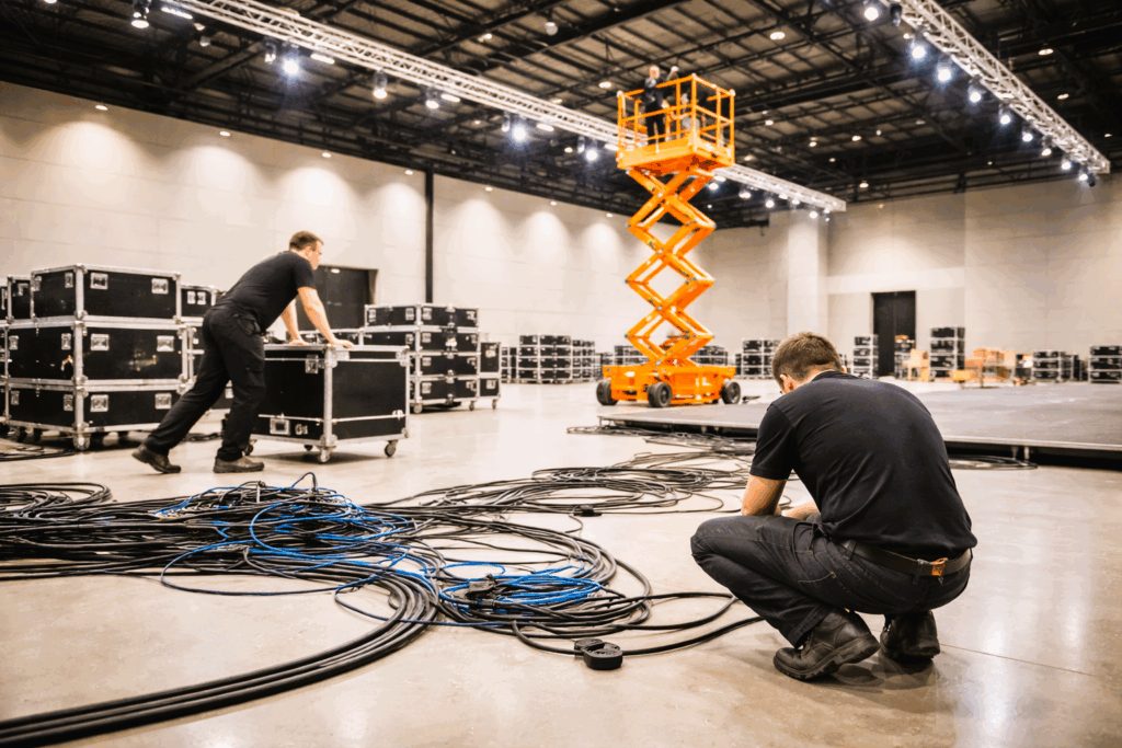 Specialist Service Partners: Offering expertise in areas such as lighting, AV, rigging, or interactive display setup.